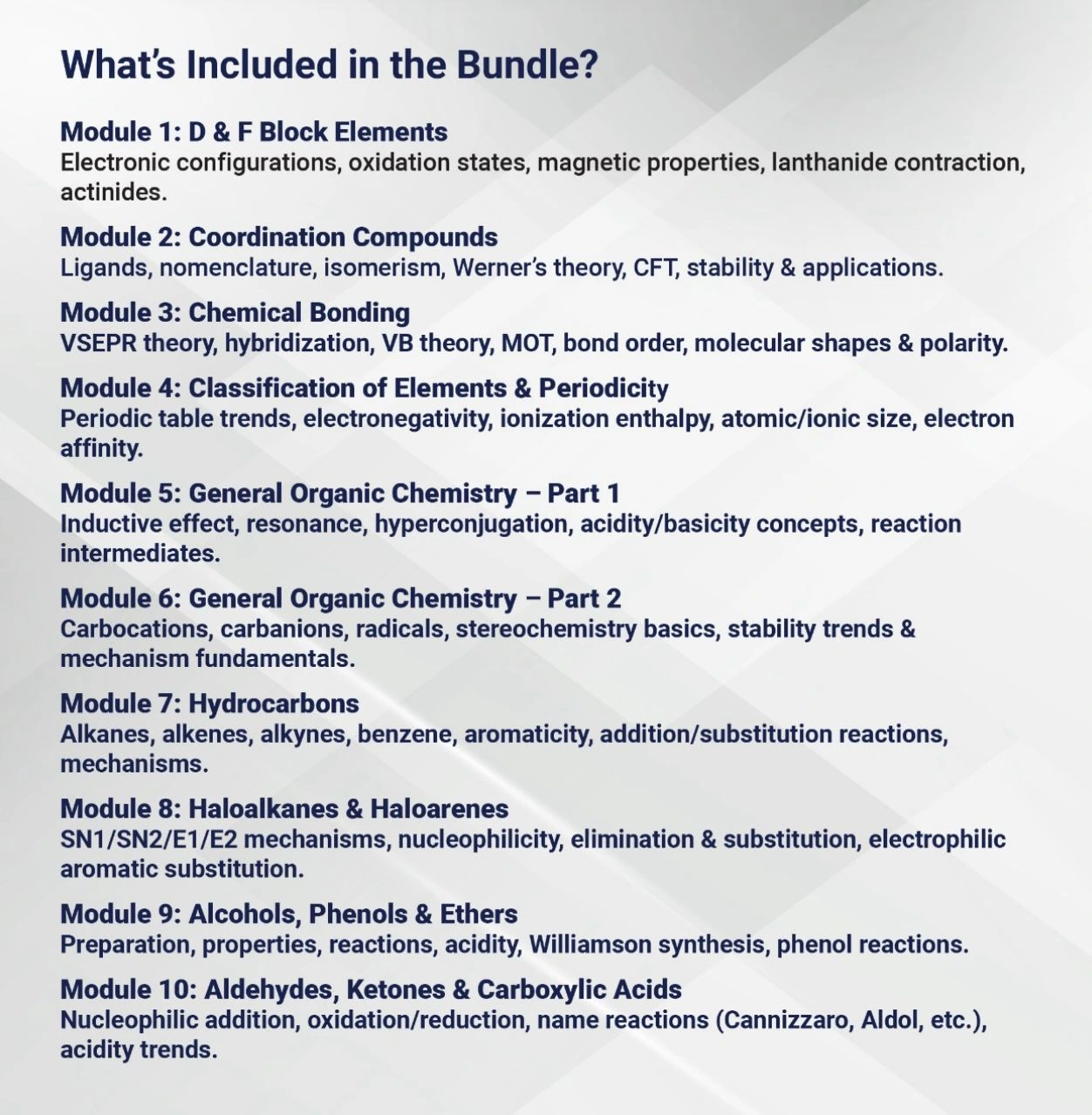 Boost your JEE and NEET preparation with our Inorganic Chemistry Bundle — a complete set of concise notes, practice questions, and concept boosters designed to strengthen your understanding of periodic trends, coordination compounds, chemical bonding, and more. Perfect for JEE Main, JEE Advanced, and NEET aspirants aiming for top ranks with crystal-clear inorganic concepts.