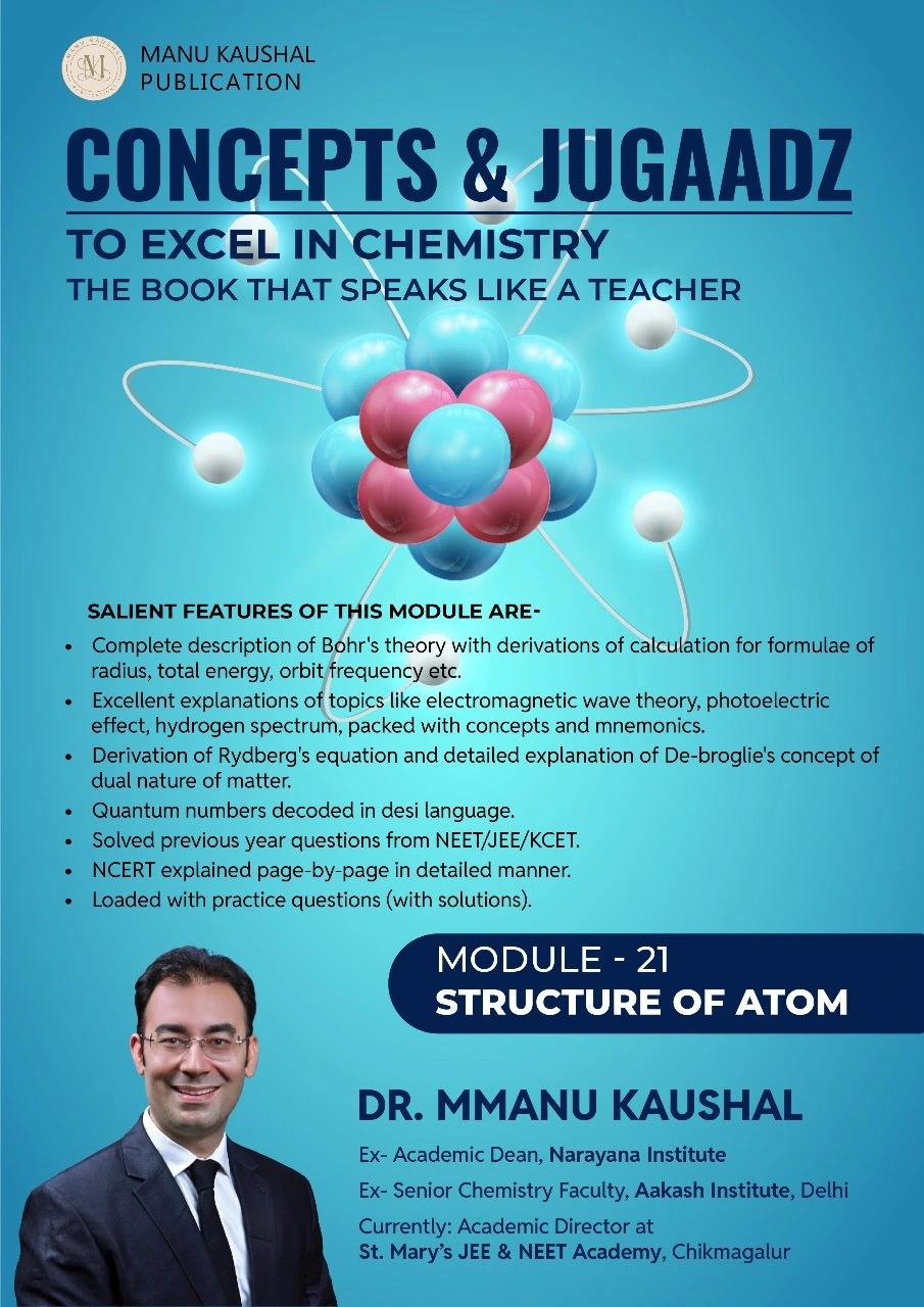 Concepts & Jugaadz – Module 21: Structure of Atom is a power-packed chemistry module designed especially for NEET 2026 and JEE 2026 aspirants. Authored by the renowned educator Dr. MManu Kaushal, this module explains complex atomic theories in the simplest, most exam-oriented way. With clear derivations, conceptual shortcuts, solved PYQs, and NCERT-focused explanations, this book helps students master one of the most scoring chapters in Physical Chemistry.